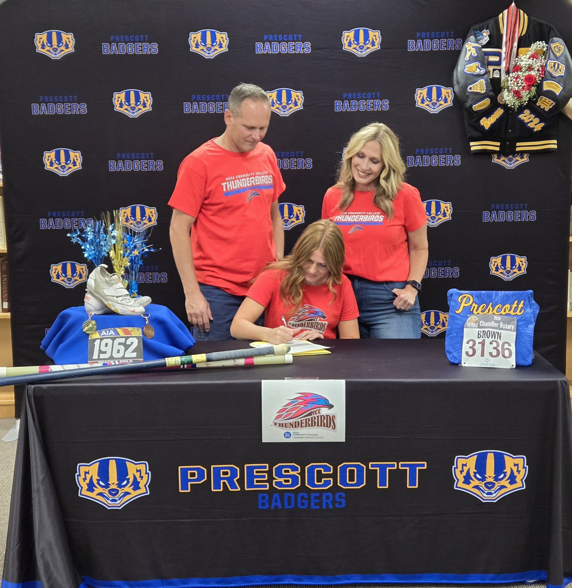 A Prescott track and field athlete will keep competing at college. Anna Brown signed with Mesa Community College. She placed fourth in the pole vault at the Division Three state meet.