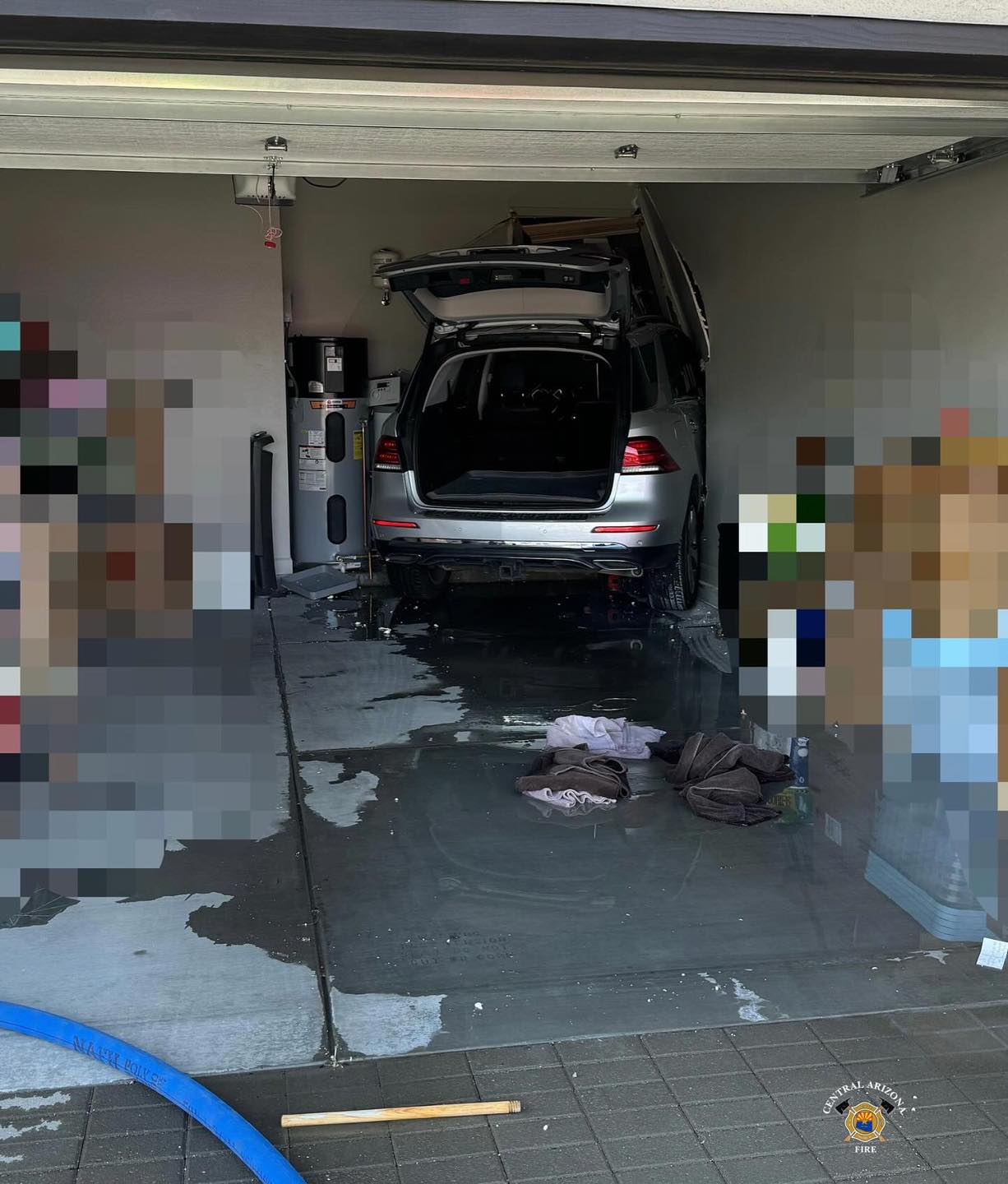 A car crashed into a home in the Jasper subdivision in Prescott Valley on Friday evening, officials with the Central Arizona Fire and Medical Authority reported. The crash severed water pipes, causing flooding throughout the entire house.
