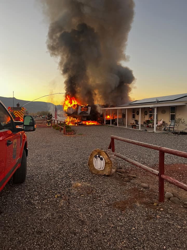 Units from the Copper Canyon Fire and Medical District dealt with a fifth-wheel fire Thursday afternoon in Camp Verde. The blaze broke out at a home on Zachary Lane. Firefighters prevented the flames from spreading to the nearby home.