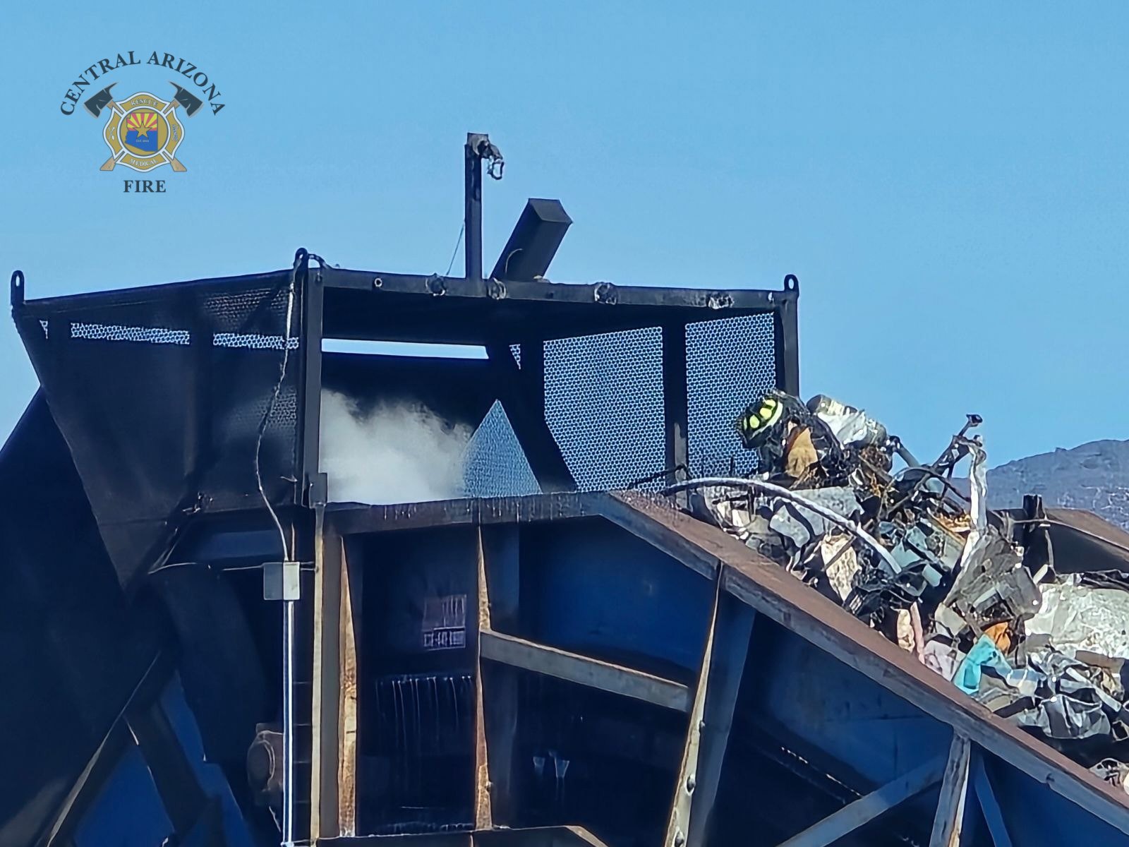 Just before 1:30 this afternoon (Tuesday), Central Arizona Fire and Medical Authority firefighters responded to and extinguished a machinery fire at the salvage yard, located at 10440 East Valley Road in Prescott Valley.