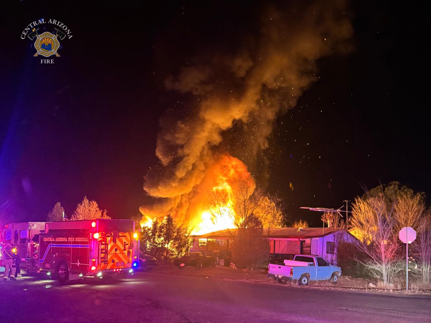 A motorhome in Chino Valley went up in flames Friday night. Central Arizona Fire and Medical Authority officials report firefighters from CAFMA and the Prescott Fire Department arrived to find the motorhome, along with a car, fully involved in flames. The fire had also spread to the nearby house.