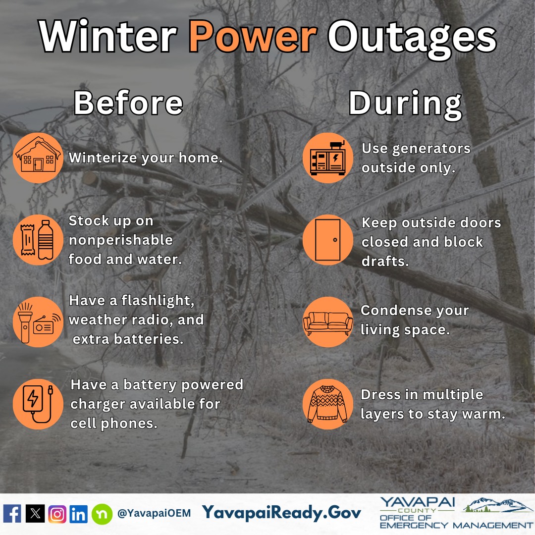 With a winter storm moving through our area, Yavapai County Emergency Management wants you to be prepared in case the wind and snow knock out power.