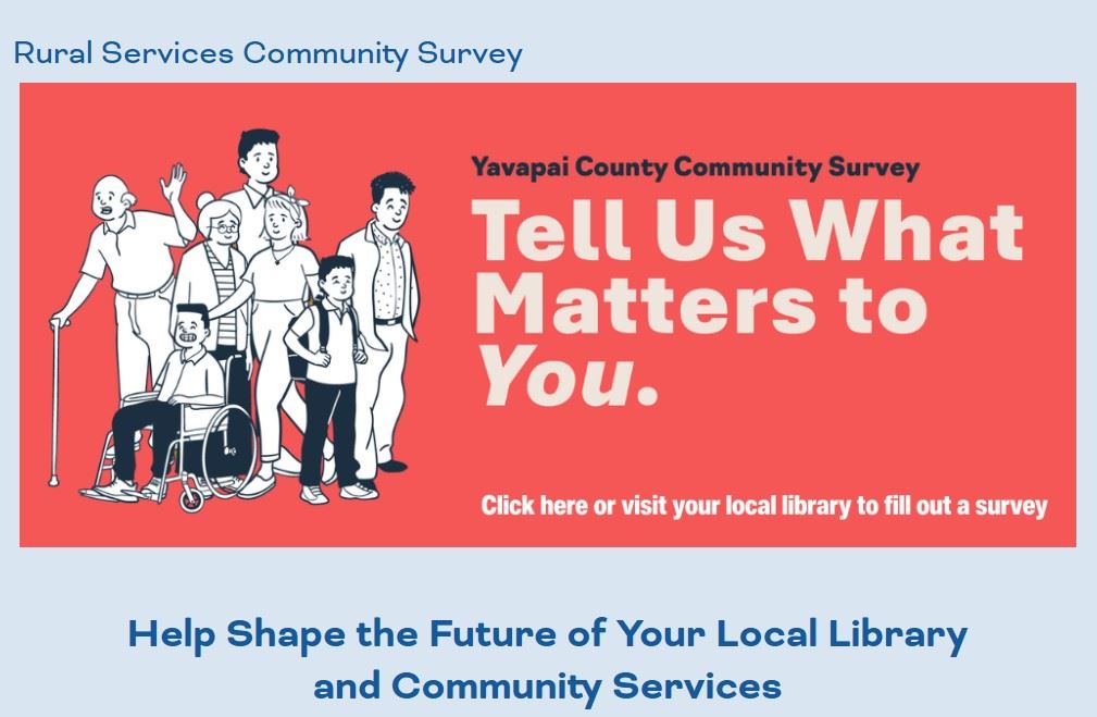 You can complete the survey online at the Yavapai County Free Library District website, in person at your local library, or you can pick up a paper copy from community partner locations.