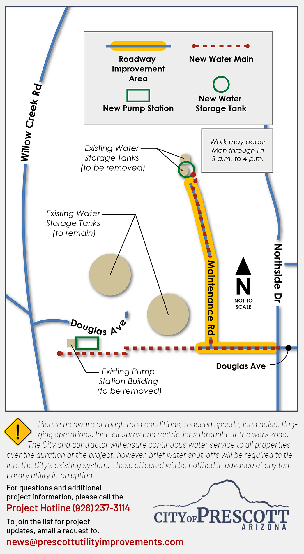 Crews are installing new water lines in the area of Douglas Avenue in Prescott. The installation of new utilities is also underway this week, resulting in the closure of the Douglas/Northside intersection.