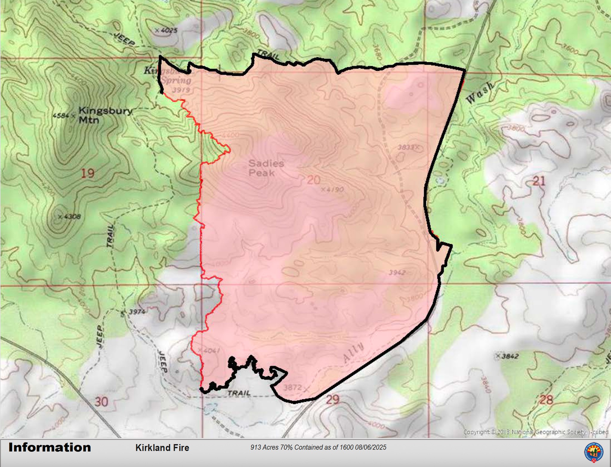 It appears the Kirkland Fire is firmly under control. The Arizona Department of Forestry and Fire Management reports the wildfire is still holding at 913 acres and is 90-percent contained. The number of personnel assigned to the fire has been reduced to 35.