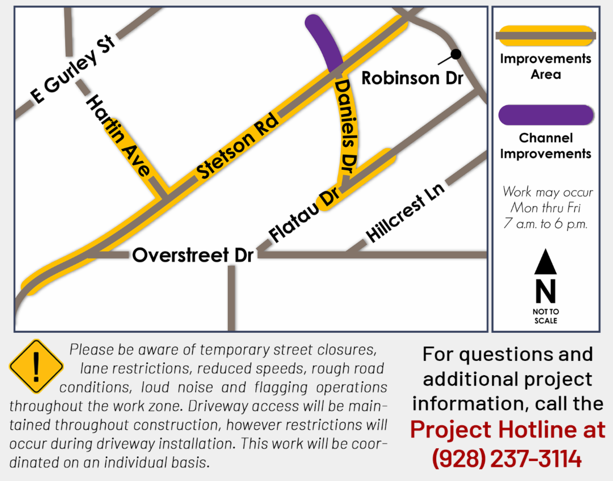 Crews are making preparations for asphalt paving on Stetson Road in Prescott this week. In addition, a new concrete drainage channel is being constructed at the intersection of Stetson Road and Daniels Drive. New curbs, gutters, and driveway entrances are also being installed along Stetson Road.