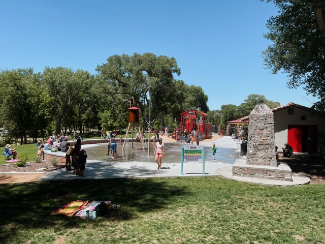 The splash pad is located next to the Hilton Garden Inn on Montezuma Street.