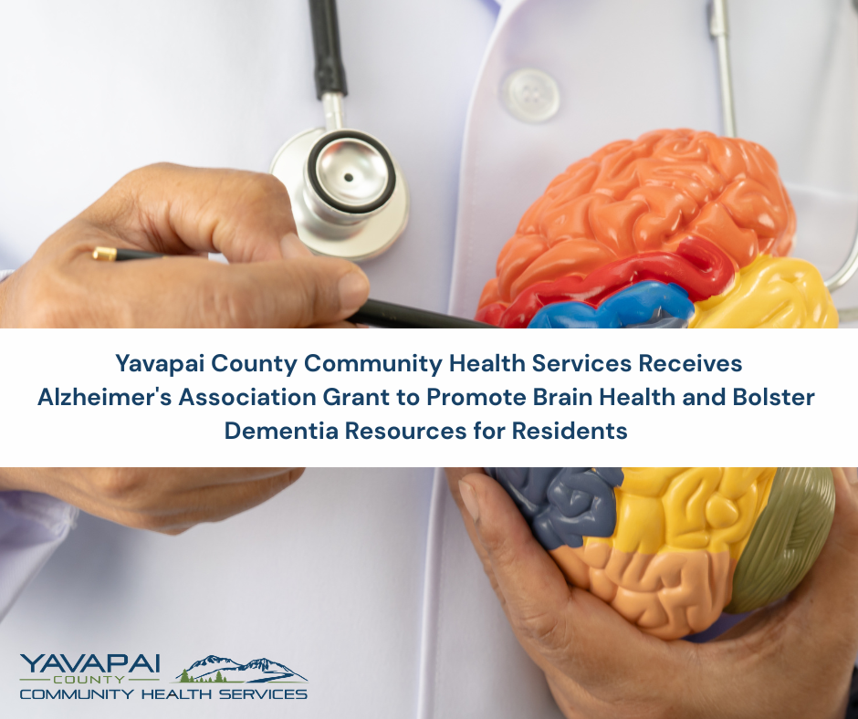 Yavapai County Community Health Services is one of 12 health departments nationwide selected to receive funding and technical support from the Alzheimer’s Association. The award comes through the Healthy Brain Initiative Road Map Strategist Program, a partnership with the National Association of County and City Health Officials. The program helps local health departments strengthen efforts to promote brain health and address dementia as a public health issue.