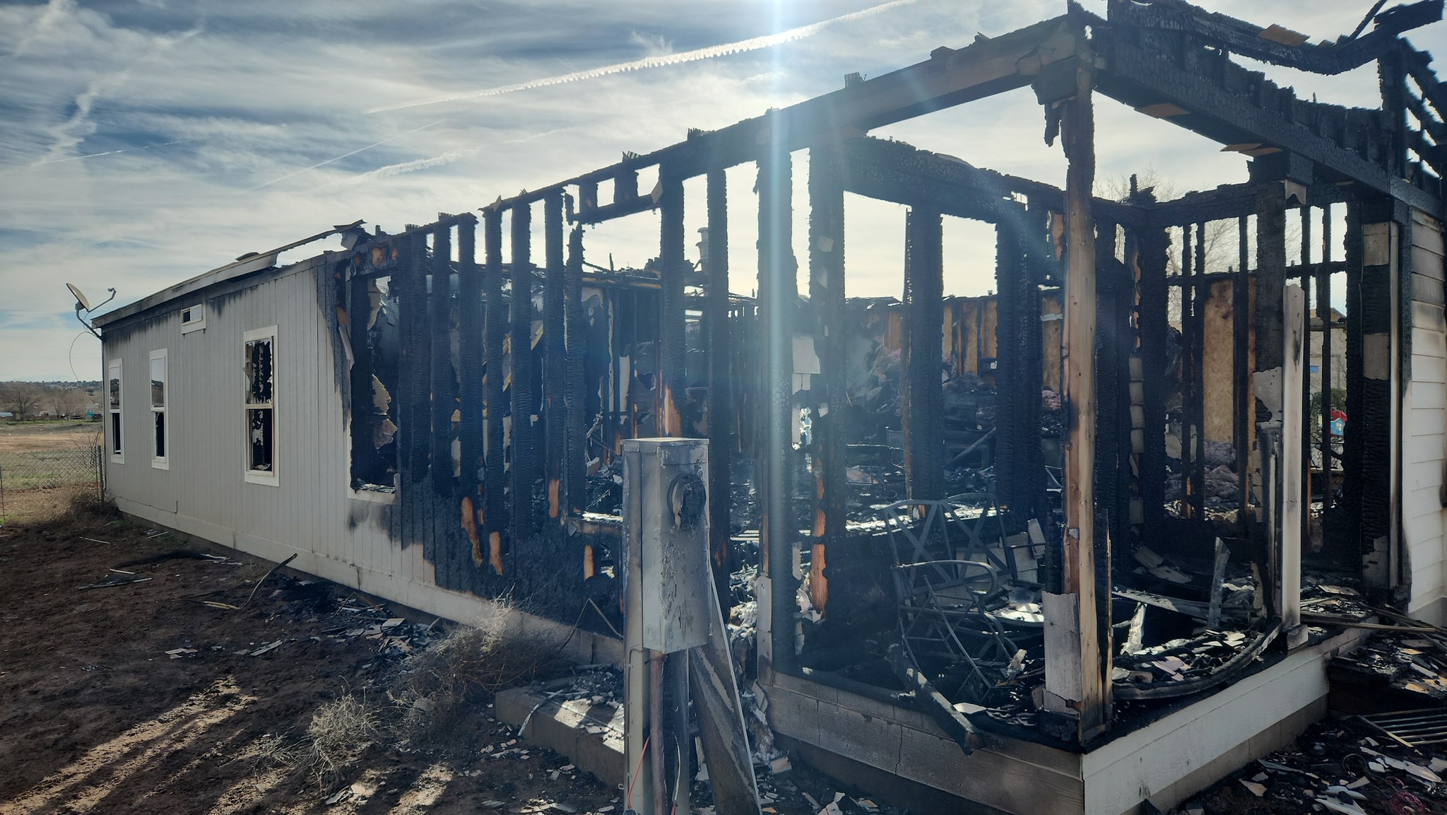Initial investigation points to an accidental fire, likely starting near a medical device. One pet dog ran back into the home and remains unaccounted for.