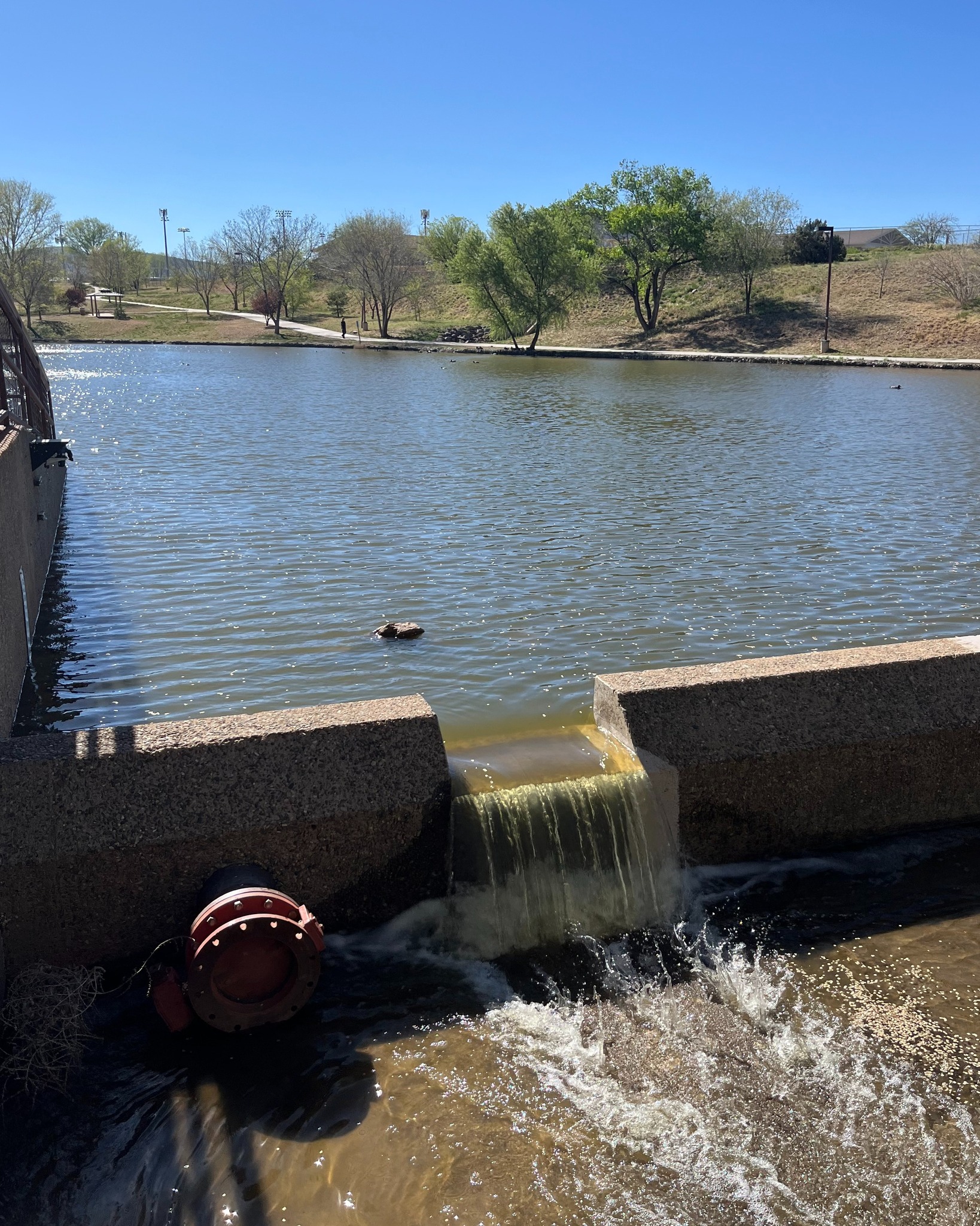 The dam at the urban forest in Prescott Valley is overflowing. But there is no need to worry about it. Town officials report the overflow is part of a test to determine the recharge capability along the wash and in the Agua Fria River.